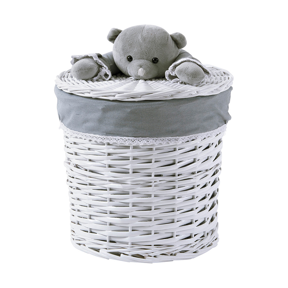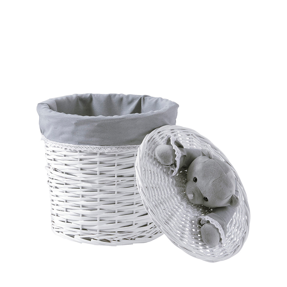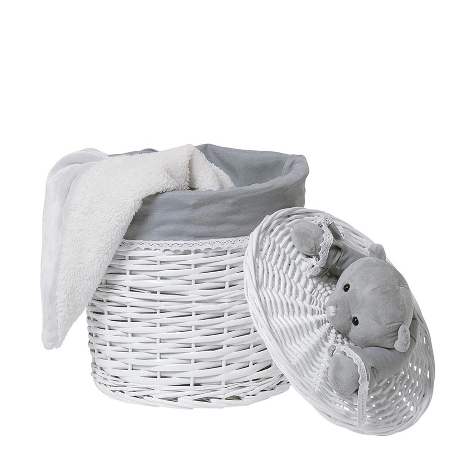 Il suo elegante intreccio in vimini e il grazioso coperchio ne fanno un elemento di decorazione a pieno titolo nella nursery.