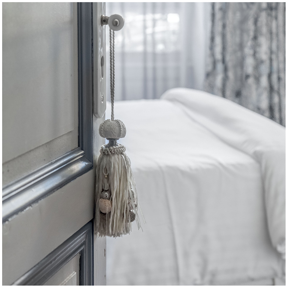 Raffinato, questo prezioso pompon sormontato da un decoro in gesso profumato minuziosamente intagliato a mano e profumato nelle nostre officine, lascia una scia dolce e permanente dove è sospesa (guardaroba, maniglia di una porta o di una finestra).